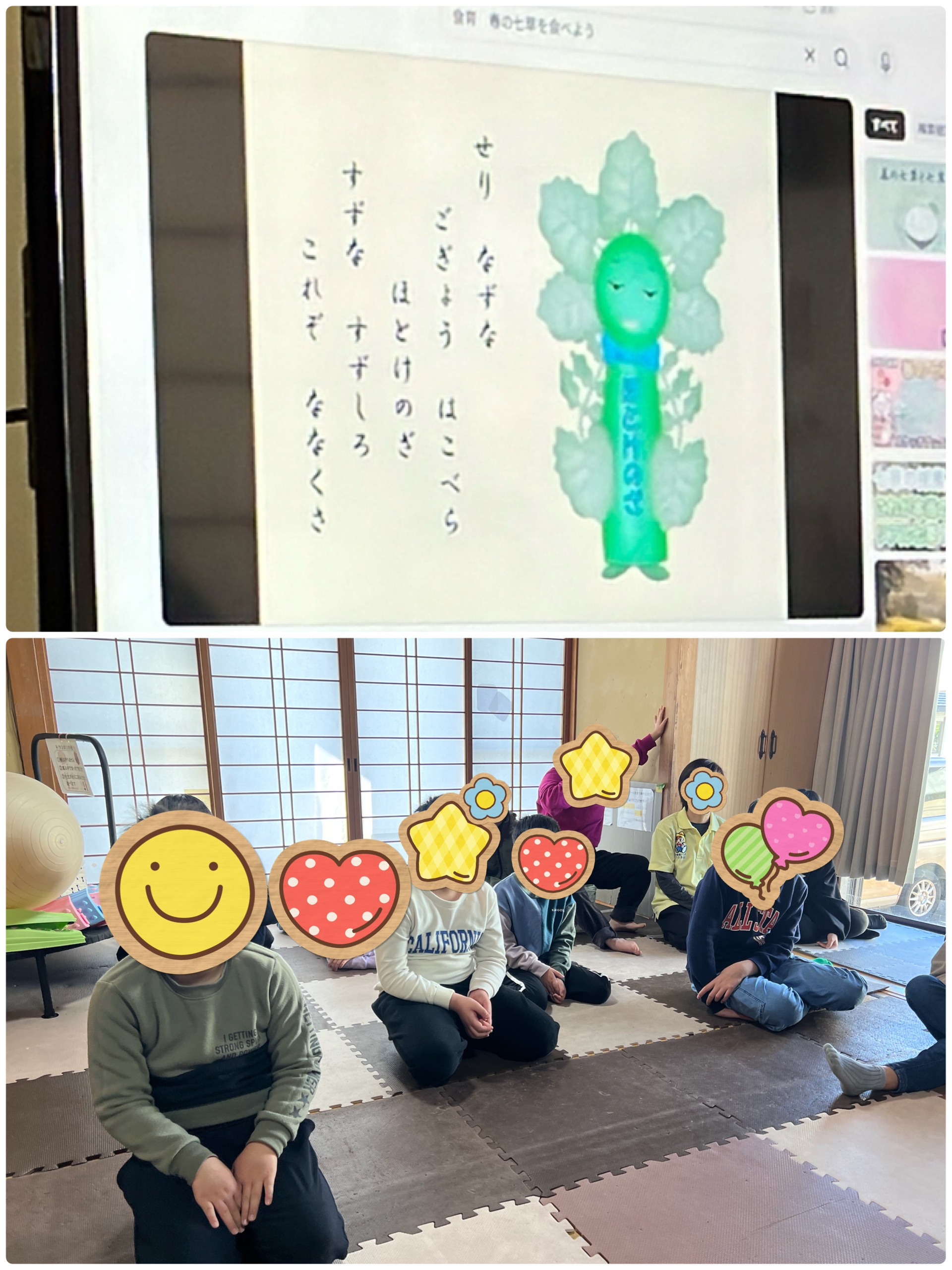 まずは、七草についてのお勉強🧐どんな物があるのか、動画を観ながら知っていきました。
