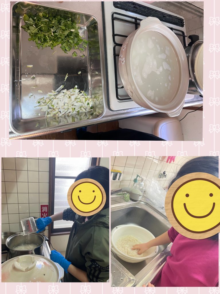 ぴのきおかわのえでは新年に七草粥をみんなで作りました😄